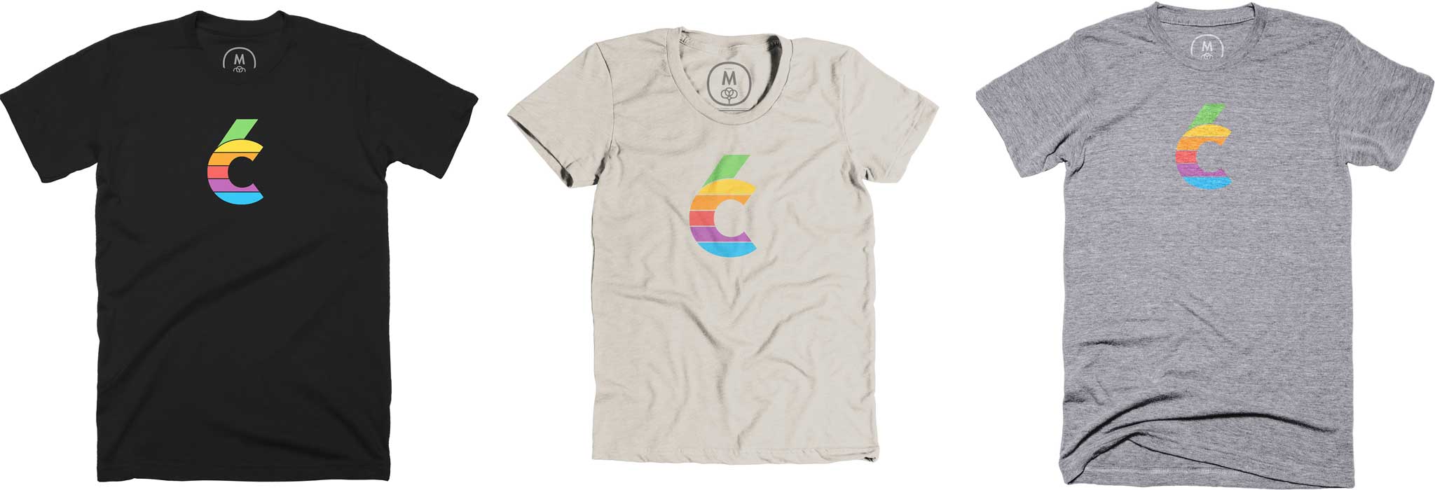 After the successful multi-colored Accidental Tech Podcast shirt finished its sale, I worked with Cotton Bureau to create an official Six Colors shirt. It’s a bit of a homecoming, since the site’s “6C” logo was in fact based on a shirt mock-up by Cotton Bureau last fall.