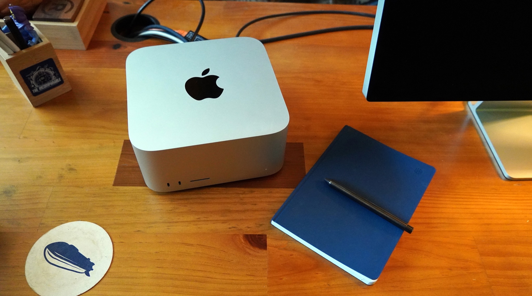 I’m still not used to it. I’m hoping that there will soon be under-desk mounts for the Mac Studio, so I can hide it away from view altogether.1 But that’s me—other people will probably not have any issue with having a little block of aluminum chugging away on the desk, attached to an external display.